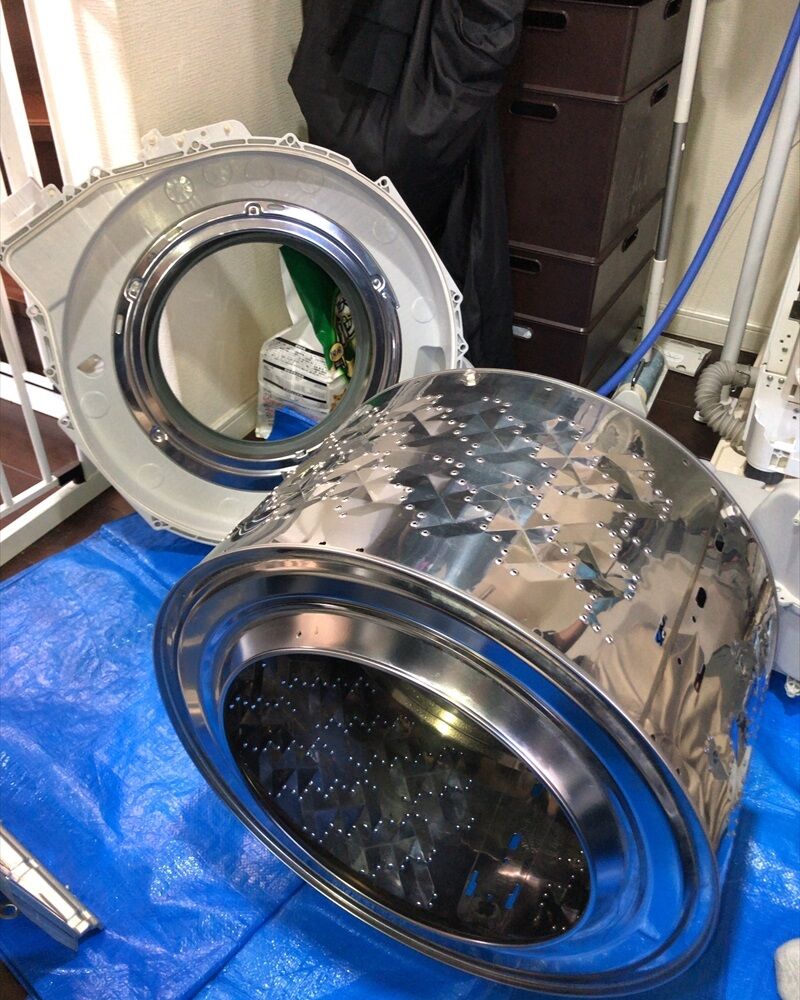 メーカー・型番によってさまざまな機種特性がある状況ですが、当店では全メーカー洗濯槽(完全分解)を外せる技術がございます。