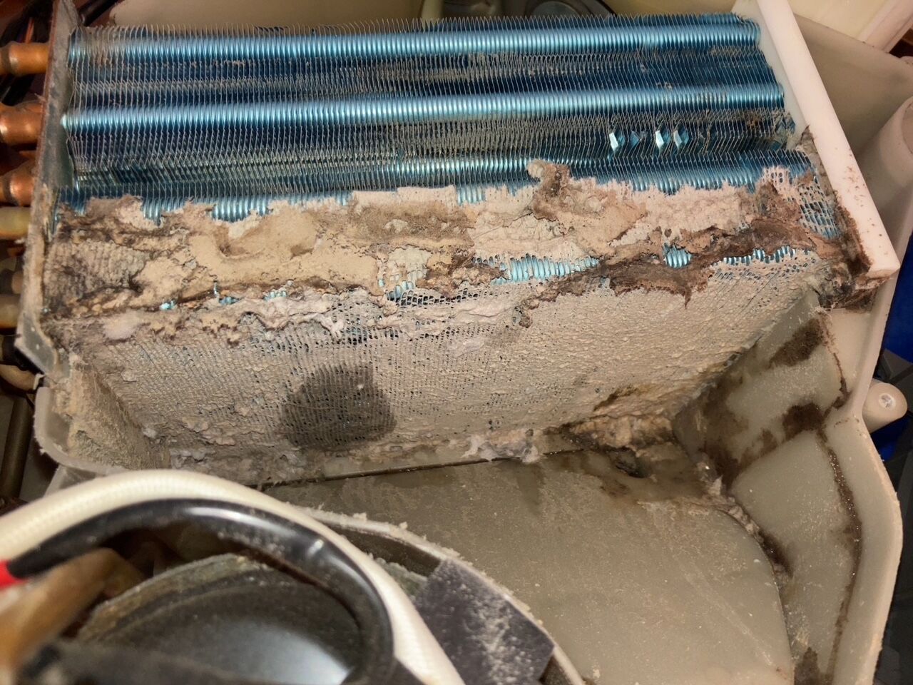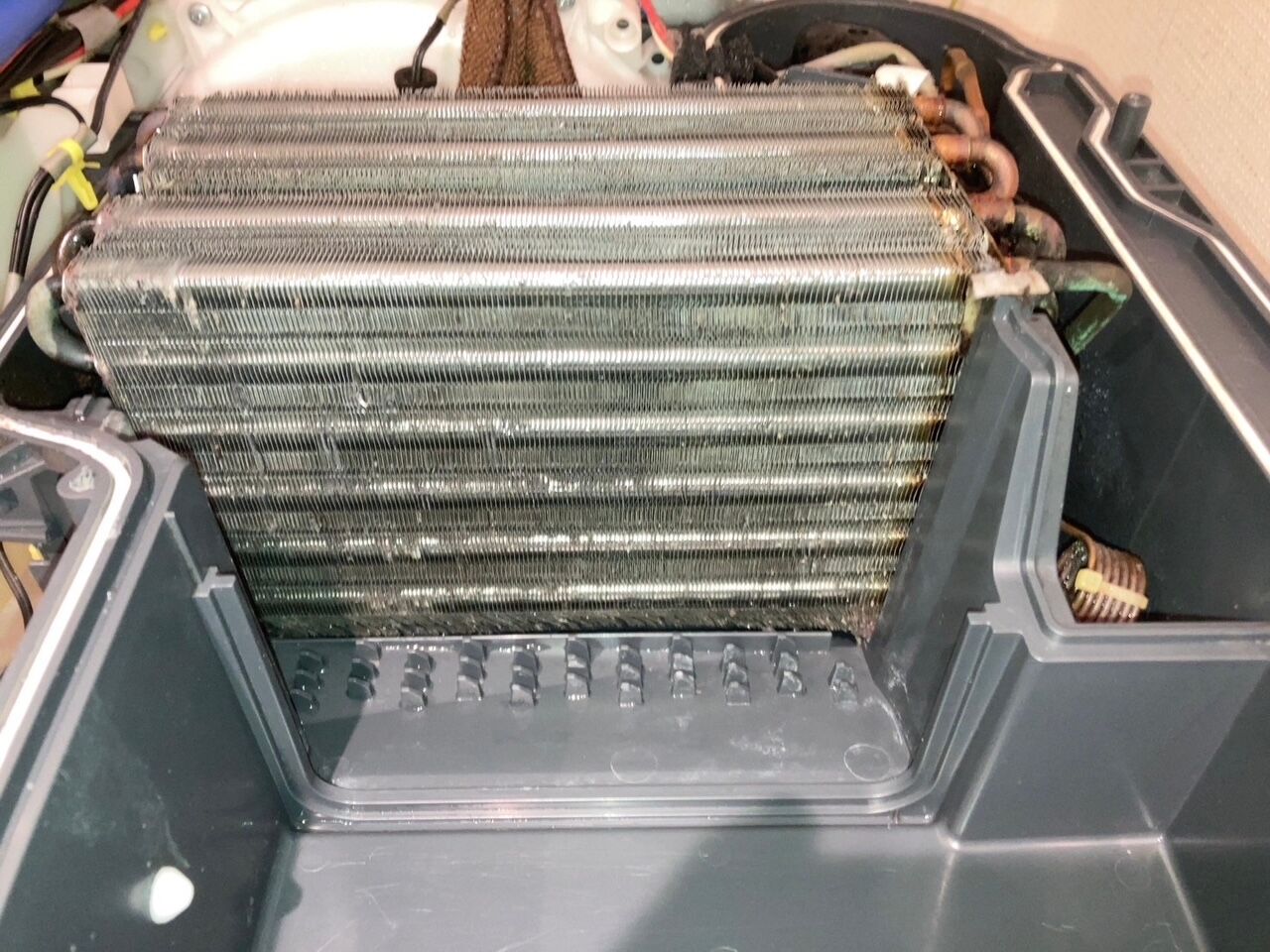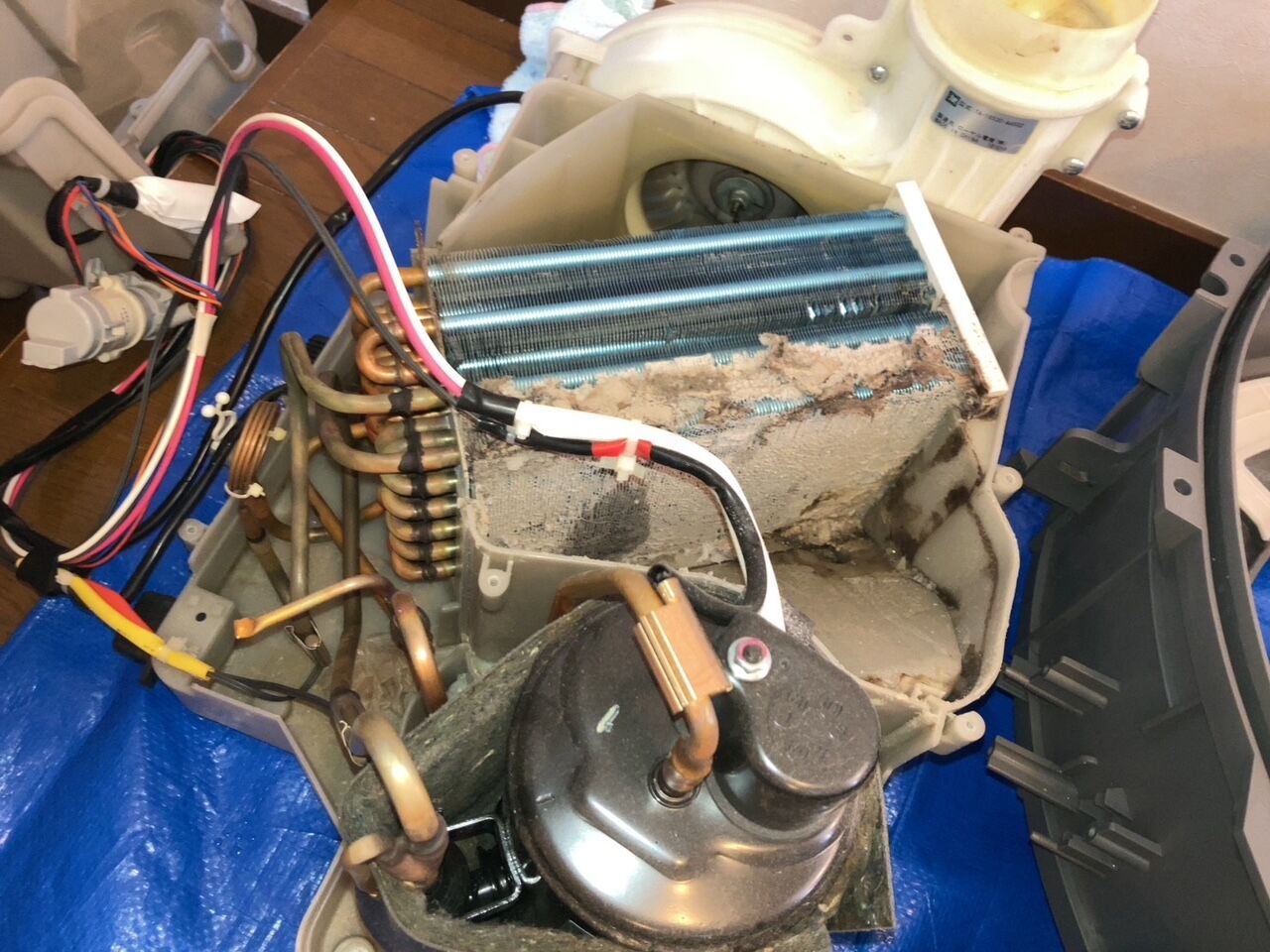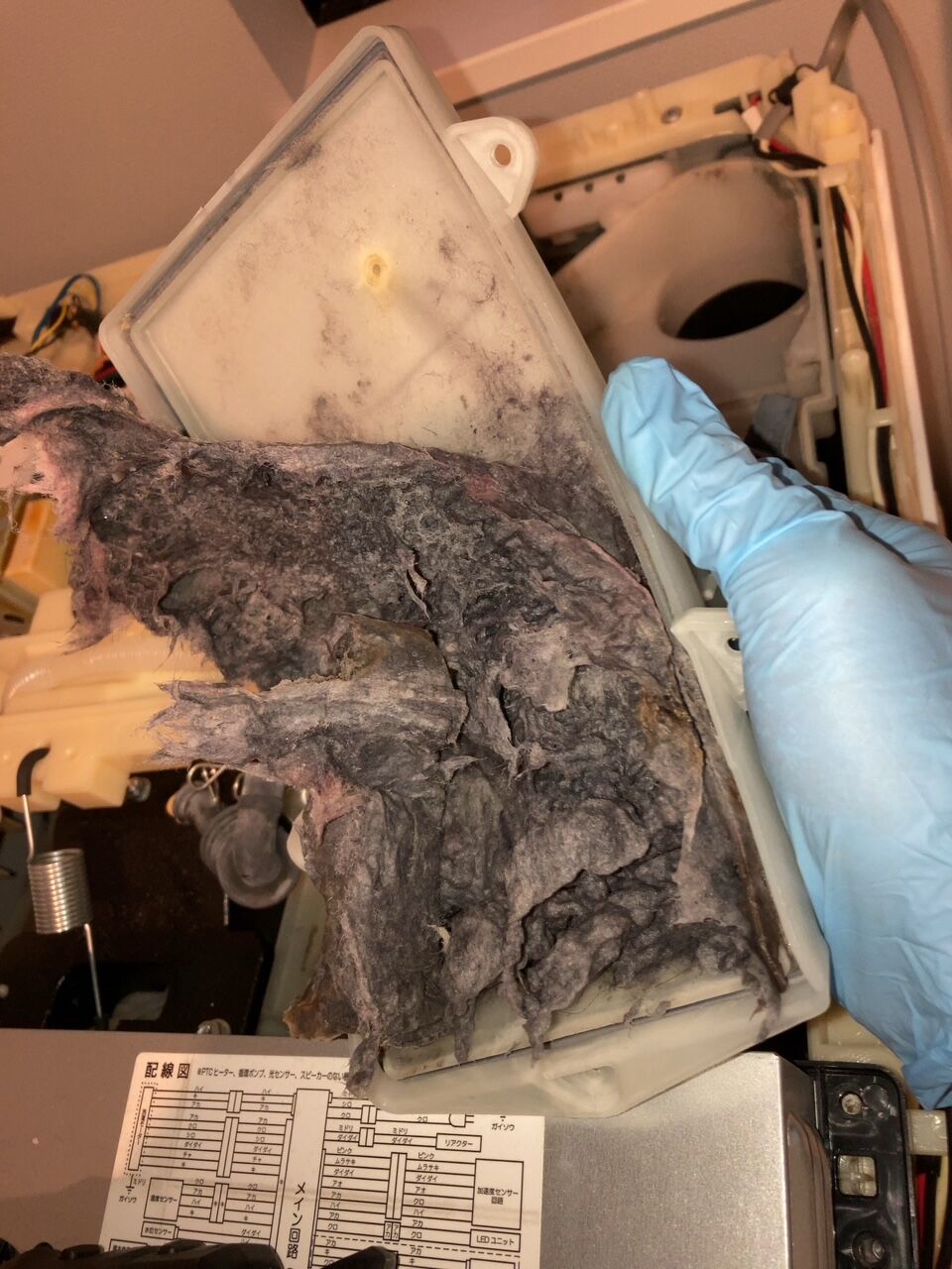 乾燥ユニットをさらに分解していくと、乾燥の大元の機器が出てきますがホコリで目詰まりしているのが分かると思います。