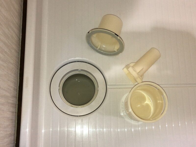 排水口は、水垢・カビでドロドロになってる事がほとんどで臭いの元になりますので、分解してキレイに洗浄しましょう♪