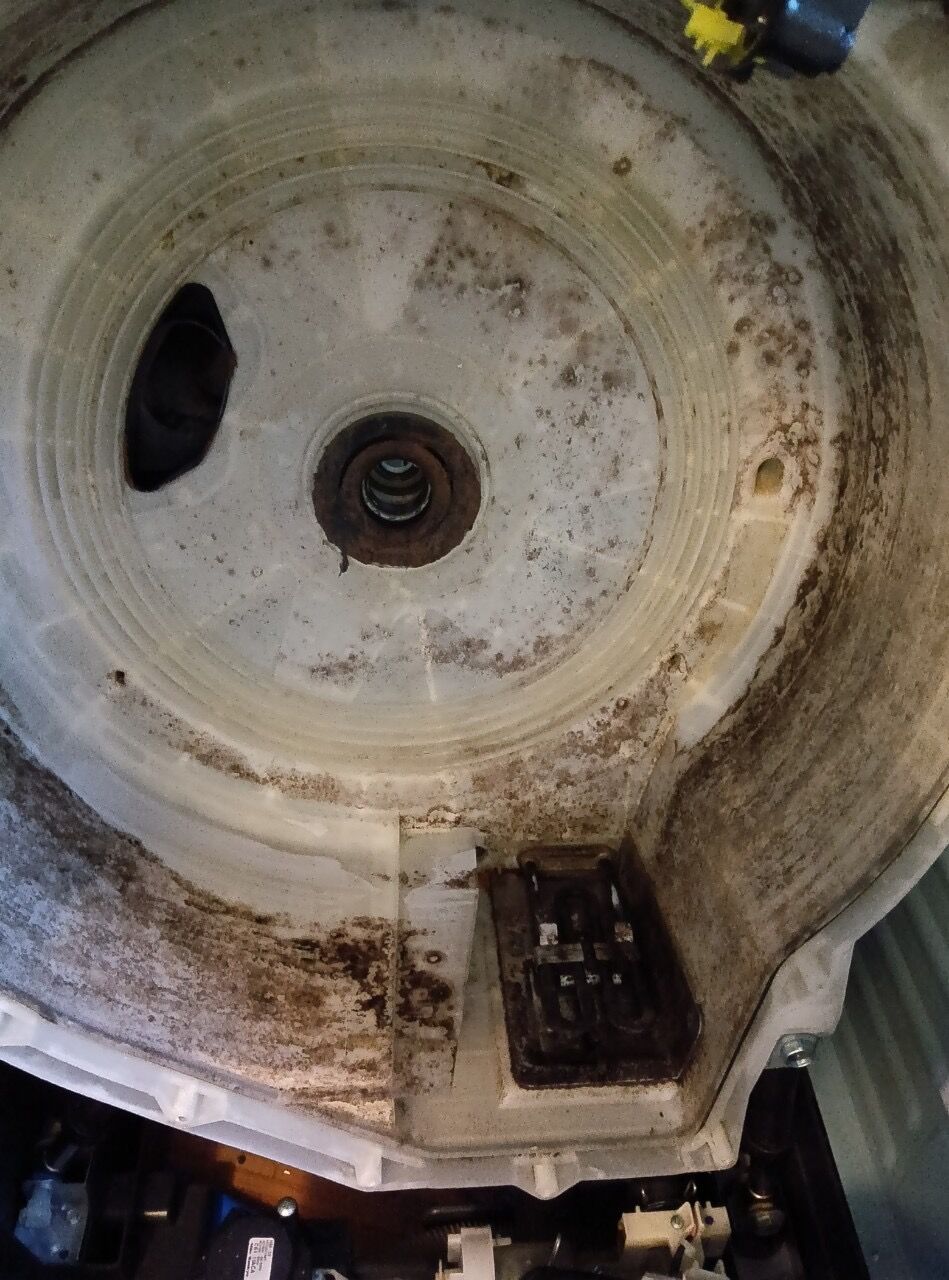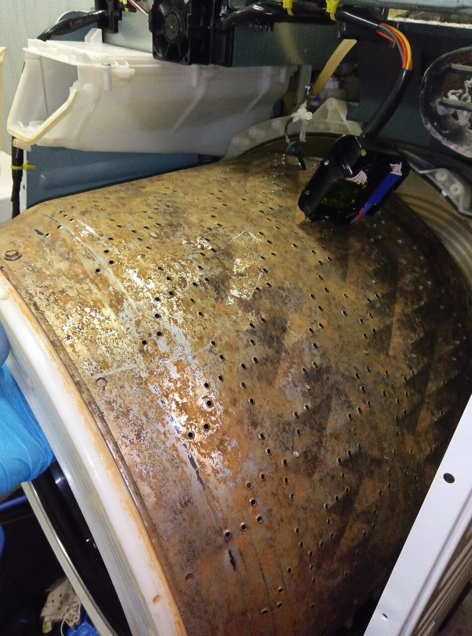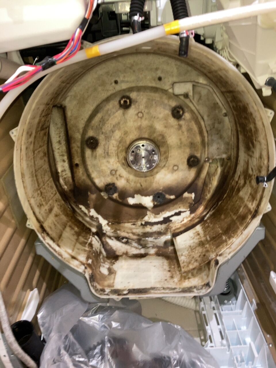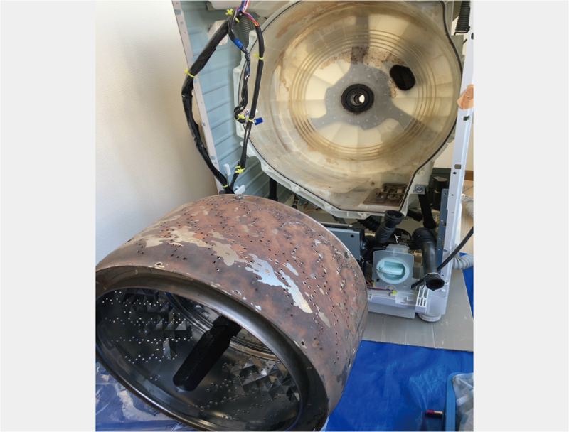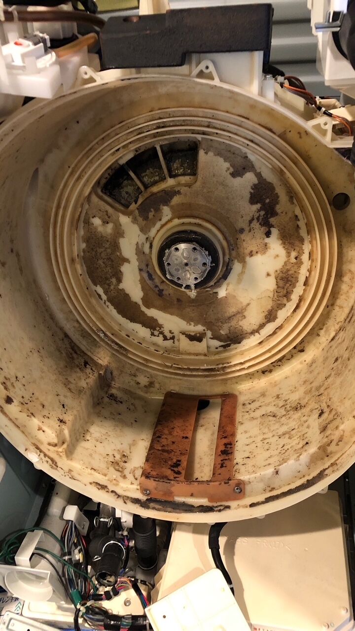※洗濯槽を止めているボルトのサビや重度の固着の場合は、無理に外そうとすると部品の破損リスクにつながる為、完全分解一歩手前状態でのクリーニングになります。