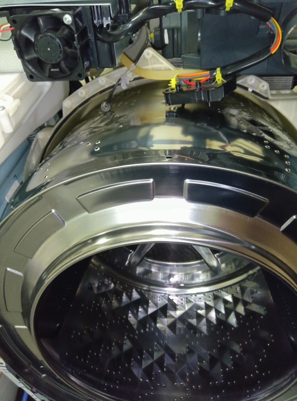 ドラム式洗濯機のメーカー・機種により(パナソニック・シャープ1部機種)洗濯機を引っ張り出して背面側を分解しないと、洗濯槽脱着(完全分解)ができない構造をしております。