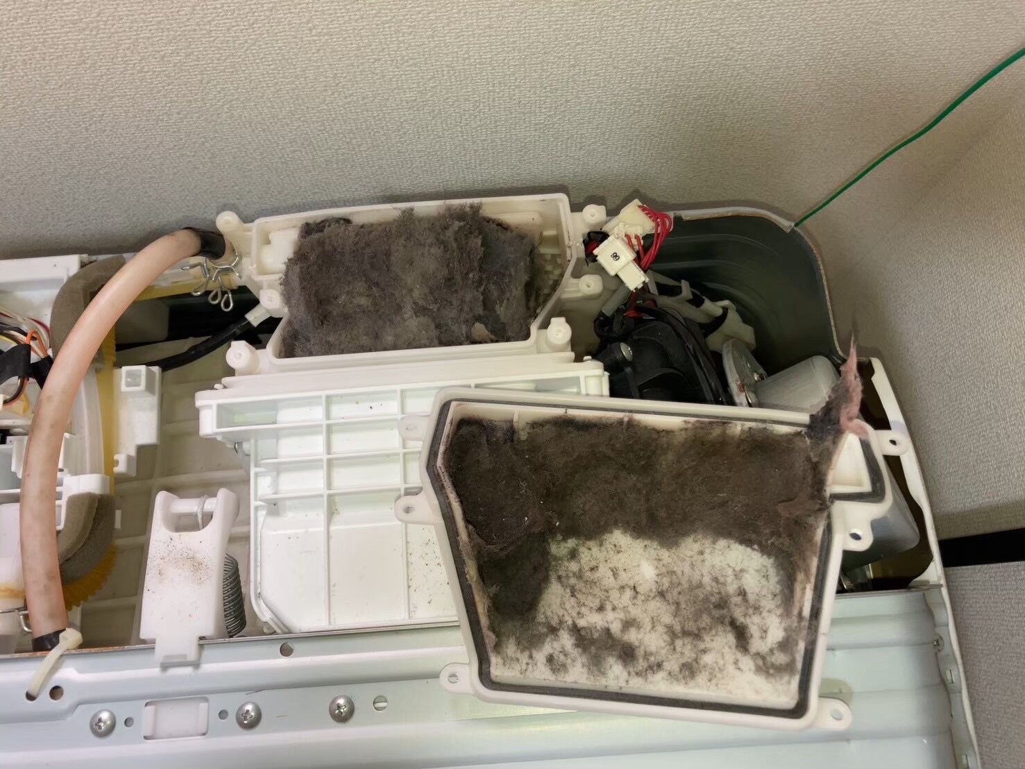 ただ乾燥ユニットを外すのがかなり困難な為、ほとんどの業者の方が外しておりません。 (過去に乾燥が回復しないとの事で半年ごとに業者の分解クリーニングを頼まれていたお客様のドラム式洗濯機キューブルを分解して確認したところ乾燥ユニットが手つかずの状態でした。 後日、お客様より乾燥が回復したとご連絡を頂いております。)