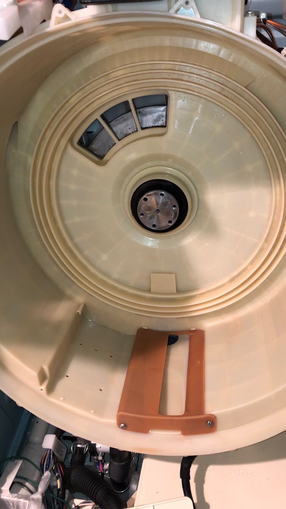 縦型洗濯機であれば洗濯槽が固着していてもギヤプーラーという工具があれば外せますが、ドラム式洗濯機はそのような工具もない為、ほとんどの業者の方が洗濯槽を外せず悩んでおります。