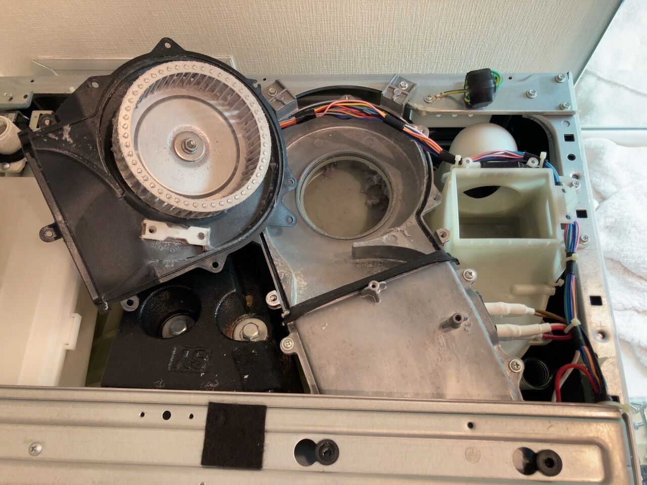 この中に乾燥回復に影響する部品があり、乾燥ユニットを取り外し分解してお掃除しないと乾燥回復しない機種になります。