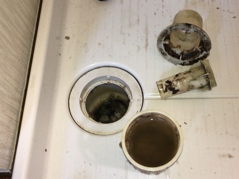 排水口は、水垢・カビでドロドロになってる事がほとんどで臭いの元になりますので、分解してキレイに洗浄しましょう♪