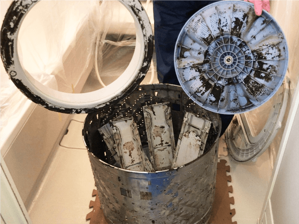 プロに任せれば洗濯槽を取り外し丸ごと洗浄するので驚くほどキレイになります。